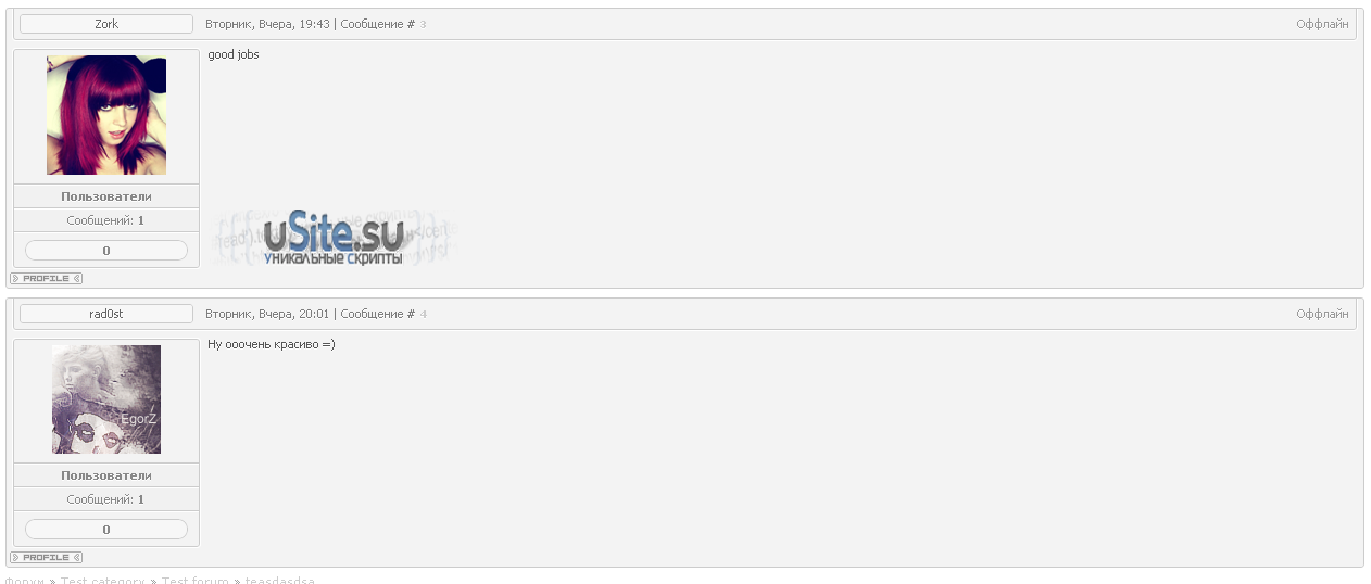 По просьбе пользователей сайта uSite.Su выкладываем серый вид сообщения для форума. Данный вид предназначен для светлых шаблонов, в остальных случаях будет смотреться не очень красиво :D. С установкой думаю разберётесь, всё ставиться очень просто.